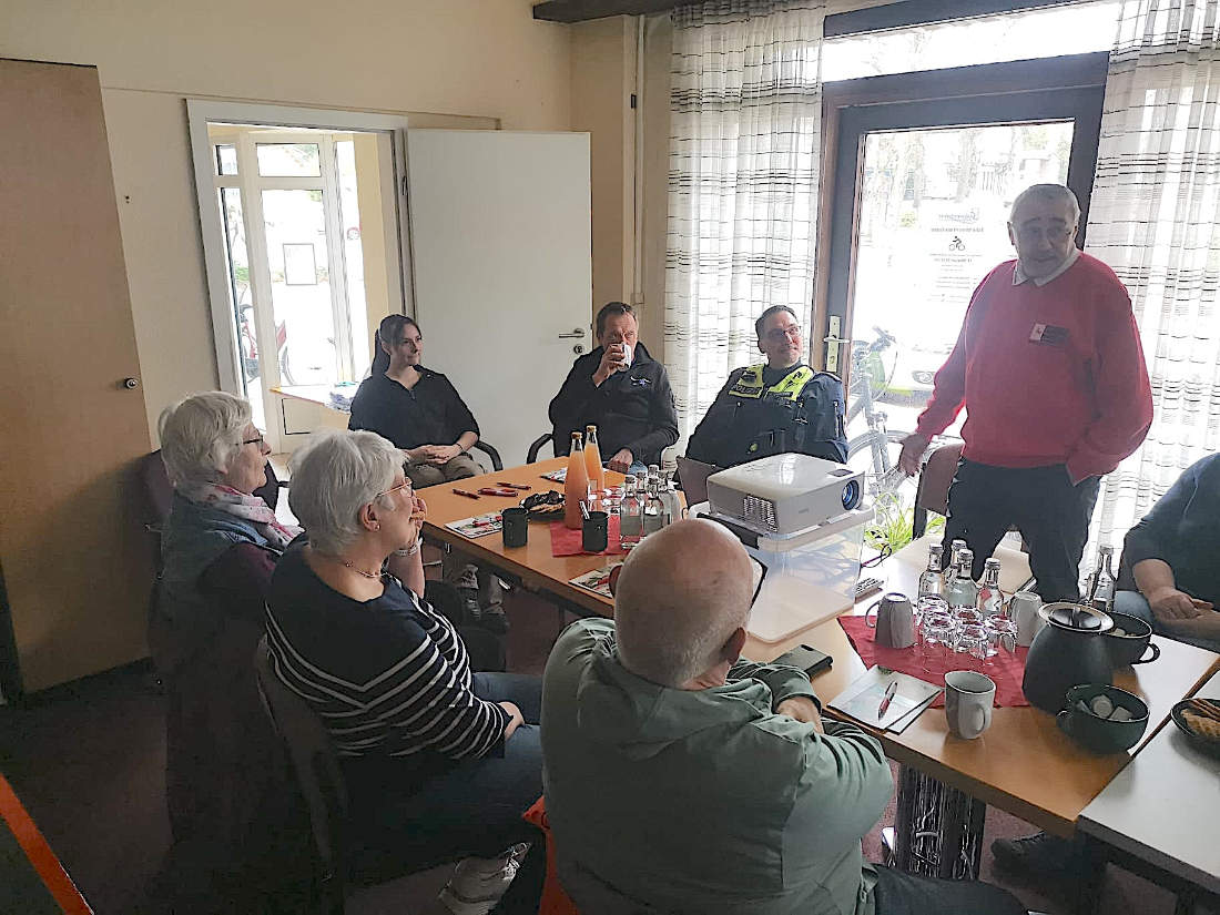 Dem Seniorenbeirat ist es gelungen, Herrn Meyer, Kontaktbeamter der Polizei, Herrn Papst vom gleichnamigen Fahrradcenter in Sittensen sowie Herrn Scheibler von der Verkehrswacht Zeven für diese Veranstaltung zu gewinnen.